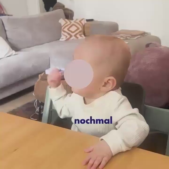 Nachdem ich auf Babygebärden durch kidsdoc auf Instagram aufmerksam gemacht wurde, hab ich mir dieses Set bestellt und finde es echt super. Wir haben jetzt "fertig" als Gebärde etabliert – immer nach dem essen machen wir es zusammen. Und es klappt super. Mein Sohn zeigt mir jetzt auch, wenn er nicht mehr essen will und merkt einfach, dass ich ihn durch das Zeichen verstehe. Er ist jetzt 8 Monate alt.